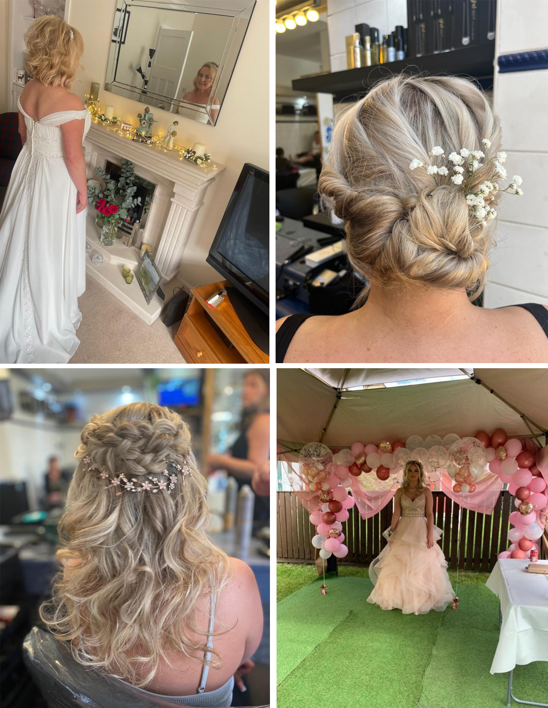 Our stylists and beauticians are professionally trained in wedding hair design and make up for all skin types and all ages, and use only the top hair and beauty products including WELLA, BHAVE, MATRIX, MAC, GHD, CND, GELISH, SWAY & GREAT LENGTH'S.